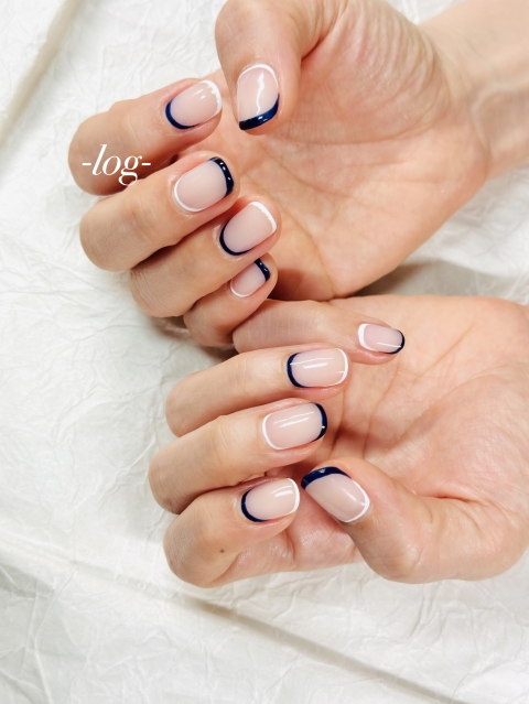 ネイビーとホワイトのWスキニーネイルデザイン★