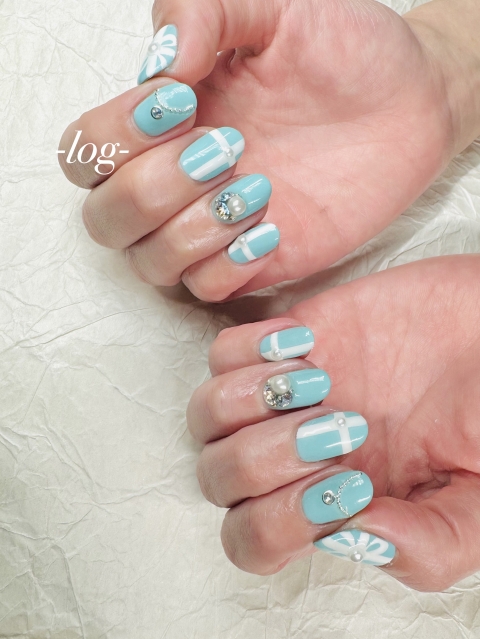 持ち込みデザインを少しアレンジしたティファニーネイルデザイン🎀